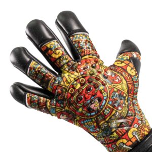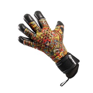 Dorso: neopreno transpirable con injertos de silicona que ayuda al armado del guante y darle más cuerpo a la zona y frecuencia para ayudar a la flexotencion de la mano. Palma látex vita grip con alto agarre y durabilidad moderada de un espesor de 3.5 mm de látex y 3.5 mm de esponja para la amortiguación de impactos del Balón. Broche: doble vuelta con plastisol para área de personalizado. Corte: Roll negativo que ayuda a tener más contacto el látex con el balón sin desproteger la palma y dedos. Dedos: puntas de látex en los dedos para darle más armado y protección a la zona de las puntas que son la parte más sensible de la mano.