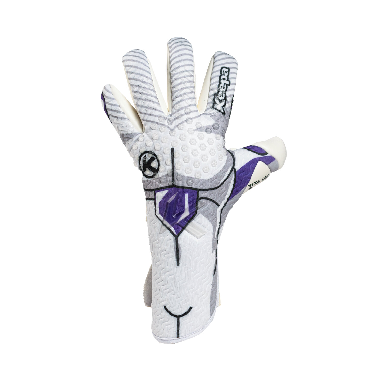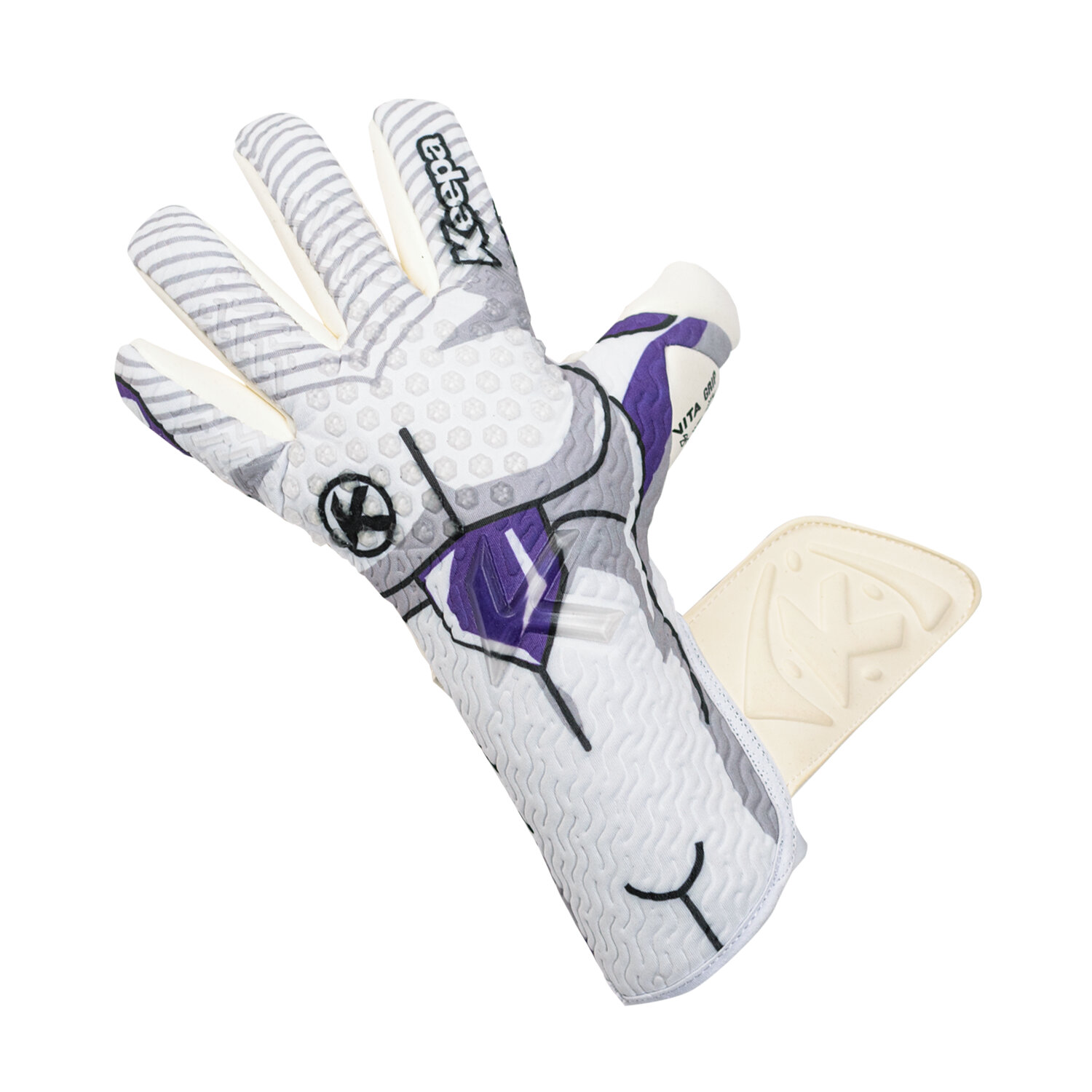 Dorso: neopreno transpirable con injertos de silicona que ayudan al armado del guante y darle más cuerpo a la zona. Palma látex vita grip con alto agarre y durabilidad moderada de un espesor de 3.5 mm de látex y 3.5 mm de esponja para la amortiguación de impactos del Balón. Broche: media vuelta de látex para darle una palma extendida y así darle visibilidad al área del dorso. Corte: roll negativo que ayuda a tener más contacto el látex con balón sin desproteger la palma y dedos